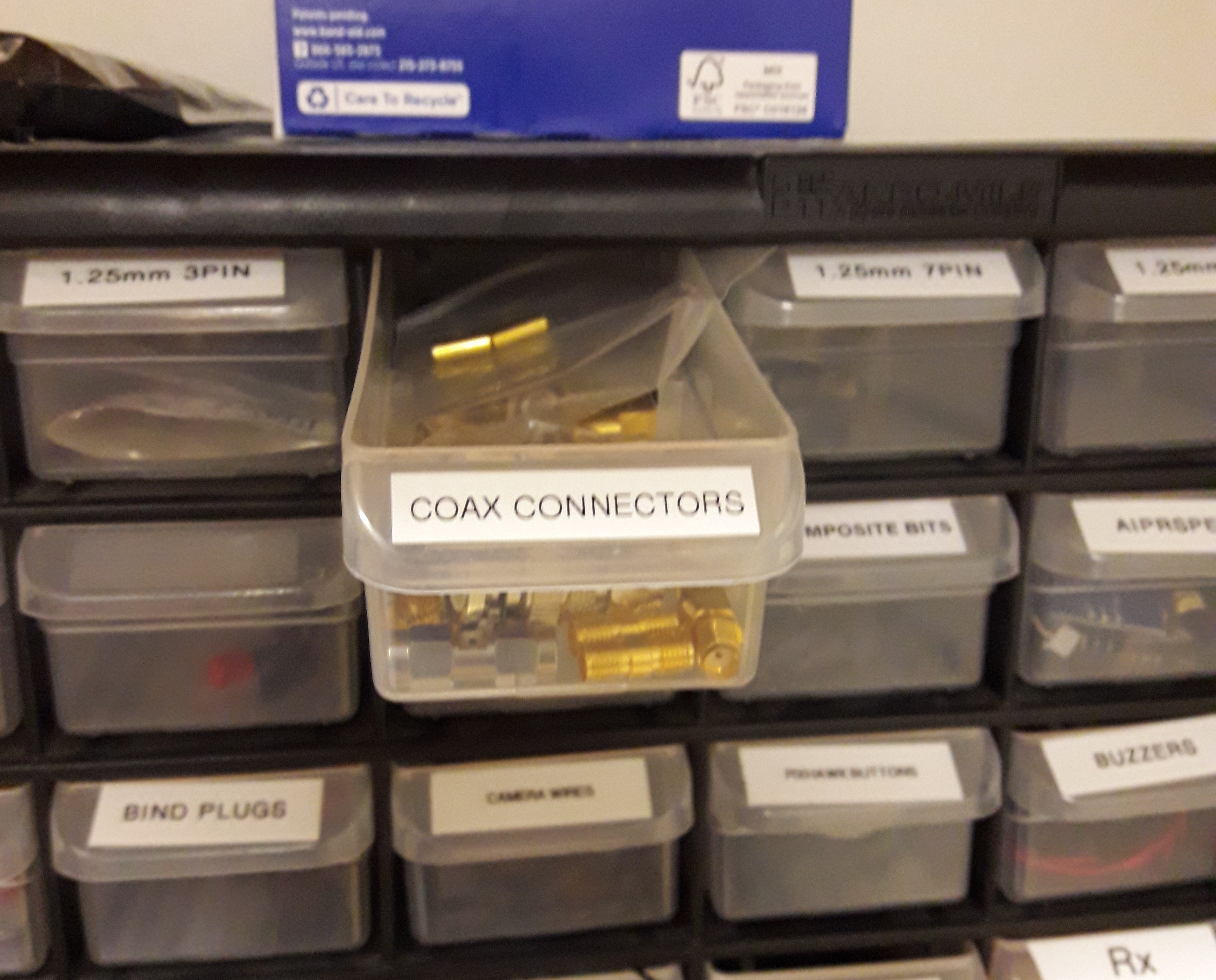 Get a Coax Connector and solder it to all five pads. The connectors are located in the back of the lab.