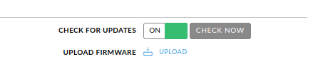 Click the gear icon on the left to access the settings pane. In the top right sector, select upload firmware. Upload the firmware downloaded in the previous step.