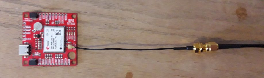- Screw the male SMA end of the GNSS antenna into the end of the female SMA/U.FL connector