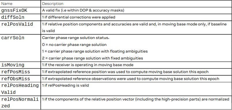 - RelPosFlags: Flags from RelPos Message