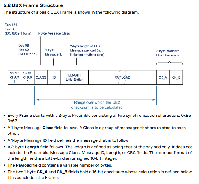 Taken from UBLOX Interface Description: See Documentation and Citations